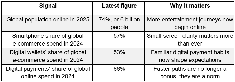 These numbers point in the same direction. More people are online, more spending happens on phones, and digital payment habits now feel ordinary rather than novel. That helps explain why smooth card-table scenes still resonate, and why online developers keep chasing that same feeling of easy entry. The winning pattern is simple: orient the user fast, remove extra effort, and let the core action stay in focus.